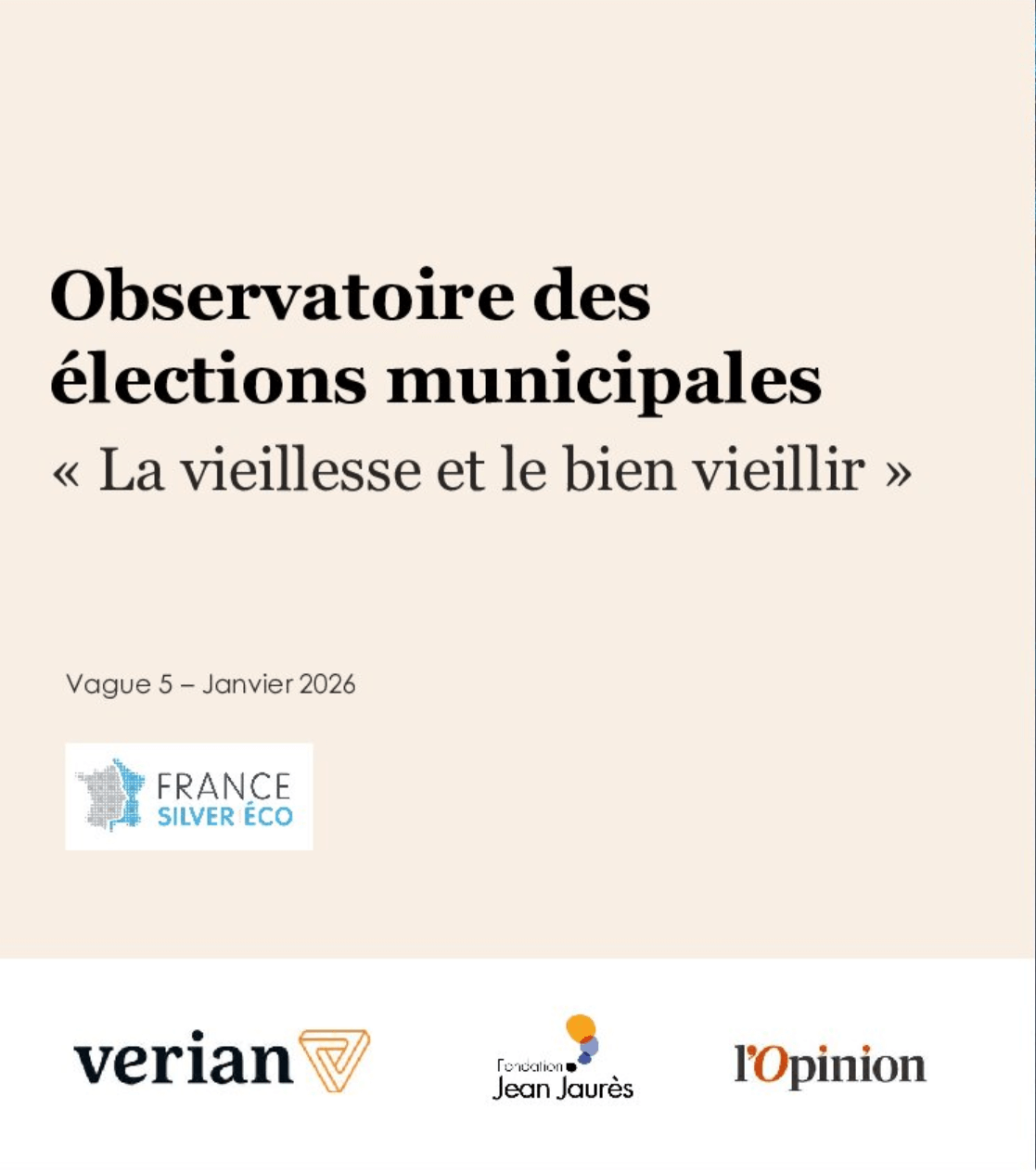 Etude réalisée par l’institut Verian pour France Silver Eco, la Fondation Jean Jaurès et l’Opinion, à l’approche des élections municipales, afin d’évaluer le niveau de préoccupation des Français vis-à-vis de l’enjeu du vieillissement de la population, de l’adaptation des territoires et des acteurs locaux à solliciter.